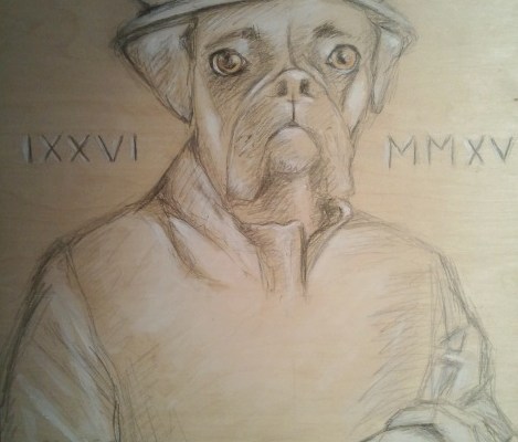 The pictures below are the process work of the paintings featuring my dog. I used pencil to layout a sketch and draw, layered