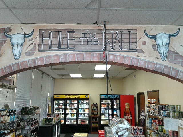 Partner, this was a fun mural to do! I had the pleasure of doing a mural for Chisholm West Wine & Liquor, in Yukon. This is located on their newly expanded area, for specialty beer. Equipped with faux brick, and cow skulls to boot. Stop by the store to see it in person!